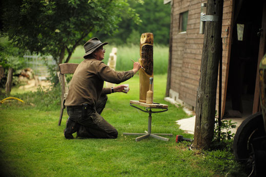 einzigartigen Schönheiten des Fund-Holzes hervor. So lebt der Baum nun als ein Kunstwerk weiter. Mit seinen Jahresringen und seinen Ästen, aber auch mit Einschlüssen oder Rissen